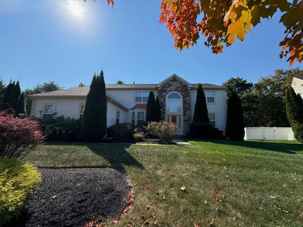 Welcome to this stunning home located in the highly desirable Equestrian Estates neighborhood**! Nestled on a bend, this nearly 3,500 sq ft property offers an abundance of space and luxury features. The exterior boasts a beautiful stucco and stone front (with recent stucco updates) and durable vinyl siding at the sides and rear. As you step inside, you’re greeted by the dramatic entryway featuring a front door with vibrant colored glass and hardwood floors that lead you through the first level. The grand bent stairway with wrought iron railings sits between the formal dining room and the spacious open living room which is enhanced by crown moldings and a bay window. A dedicated office/playroom is separated by double doors, adds flexibility to the layout, and the nearby powder room is a convenient touch. The heart of the home is the enormous family room, with soaring vaulted ceilings, a cozy gas fireplace, and impressive two-story windows overlooking the serene backyard. This room flows seamlessly into the chef’s eat-in kitchen, equipped with stainless steel appliances, a large center island, granite countertops, a pantry, and a buffet counter. The chocolate-colored wood cabinetry offers elegance and ample storage, while the tile backsplash and floors complete the sophisticated design. A slider leads to an oversized composite deck, perfect for entertaining. The second floor features an expansive primary suite with double-door entry, vaulted ceilings, and an oversized walk-in closet. The luxurious en-suite bath includes tile floors, a Jacuzzi tub, glass-enclosed shower, dual sinks, a private water closet, a linen closet, and a skylight. Three additional generously sized bedrooms—one with its own full bath—share a well-appointed hall bath with double sinks and a tub/shower combination. The finished basement offers high ceilings, carpeted floors, and an abundance of open space, ideal for recreation or additional living areas. A large storage room provides added functionality. Outside, the partially fenced rear yard is a true retreat, featuring a large composite deck with ample space for lounging, barbecuing, and dining. Enjoy a backyard basketball half court, cemented area, and plenty of room to add a pool or playset. Privacy surrounds the yard, making it the perfect outdoor oasis. Additional features include a newer roof, multi zone HVAC, recessed lighting, and ceiling fans in most rooms. The property also offers plenty of off-street parking and a three-car side-entry garage and a large laundry/mud room. This home truly has it all.